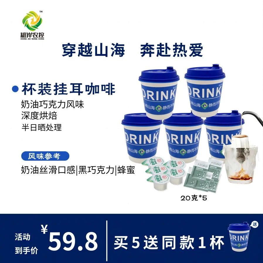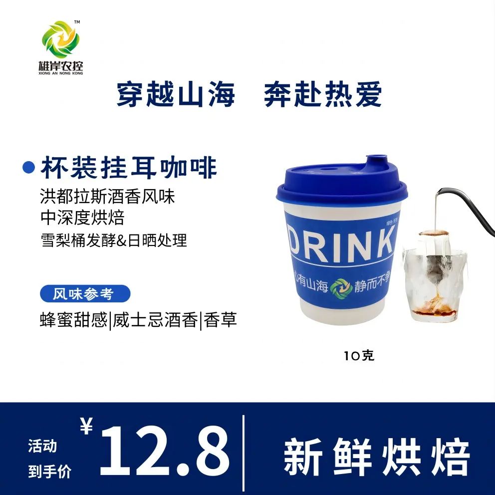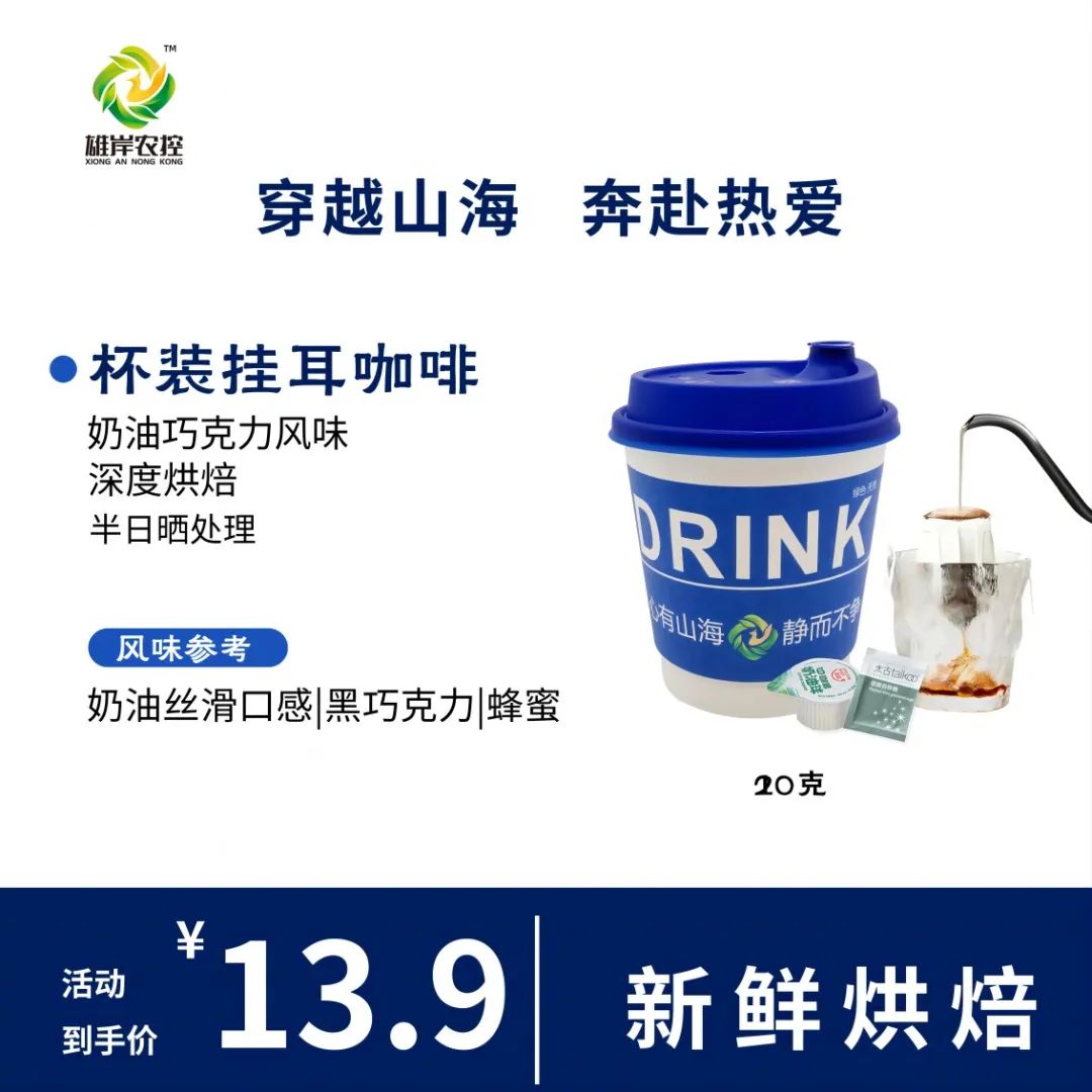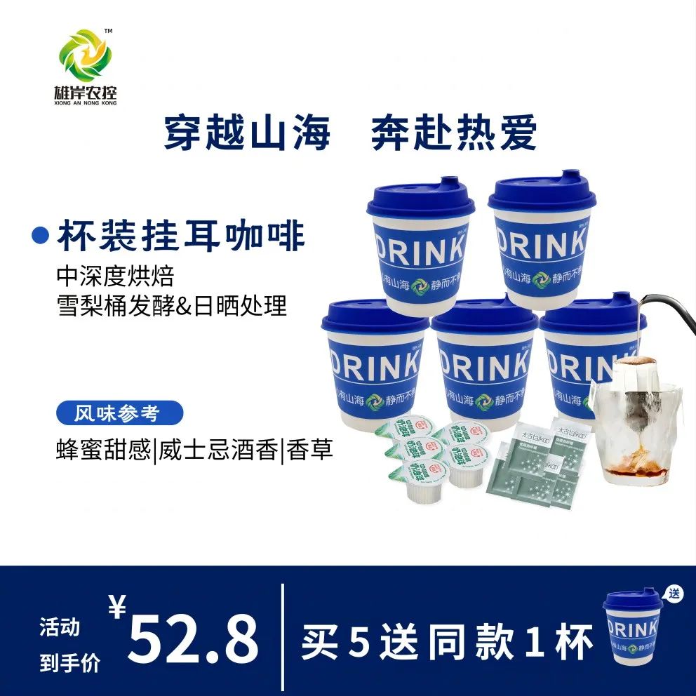 值得一提的是,雄岸农控集团还推出了杯装挂耳咖啡,在不影响咖啡风味和口感的前提下,大大提升了冲泡便利性,让消费者更便捷地享受那一口浓香。同时,为迎合消费者多样化的口味,还推出含奶球、糖包的套装,可供消费者自由搭配。