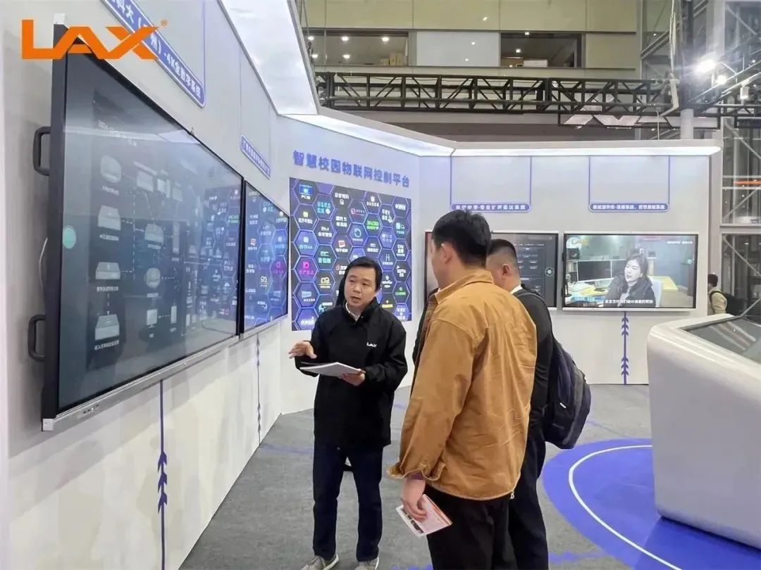 为了给观众带来最佳的观展体验效果,LAX在集成展的展位设计上进行了创新,通过现场互动体验的方式,为大家展现智慧校园物联网控制平台。