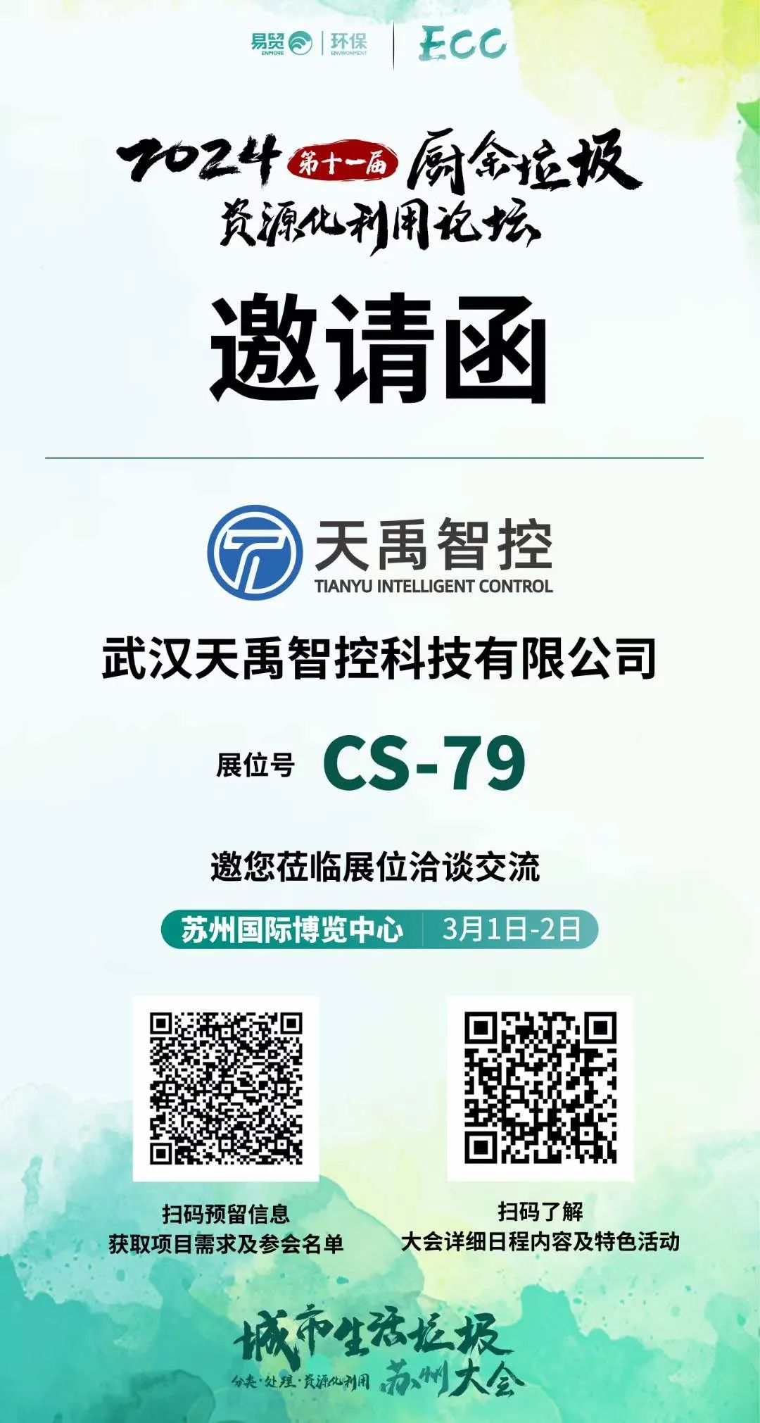 展会邀请 | 天禹智控邀您参加2024第11届厨余垃圾资源化利用论坛