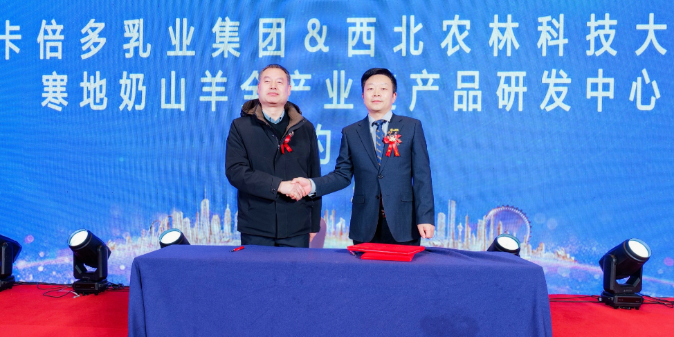 长期以来,卡倍多与西北农林科技大学曹斌云教授、宋宇轩教授、葛武鹏教授,陕西师范大学食品学院张富新教授,陕西科技大学陈合教授、舒国伟教授等行业专家深入合作,科技赋能,确保产品优秀品质和持续创新发展。为了满足卡倍多&养可滋全产业链的快速推进及发展,2024年2月21日,寒地奶山羊全产业链产品研发中心与西北农林科技大学正式签约!