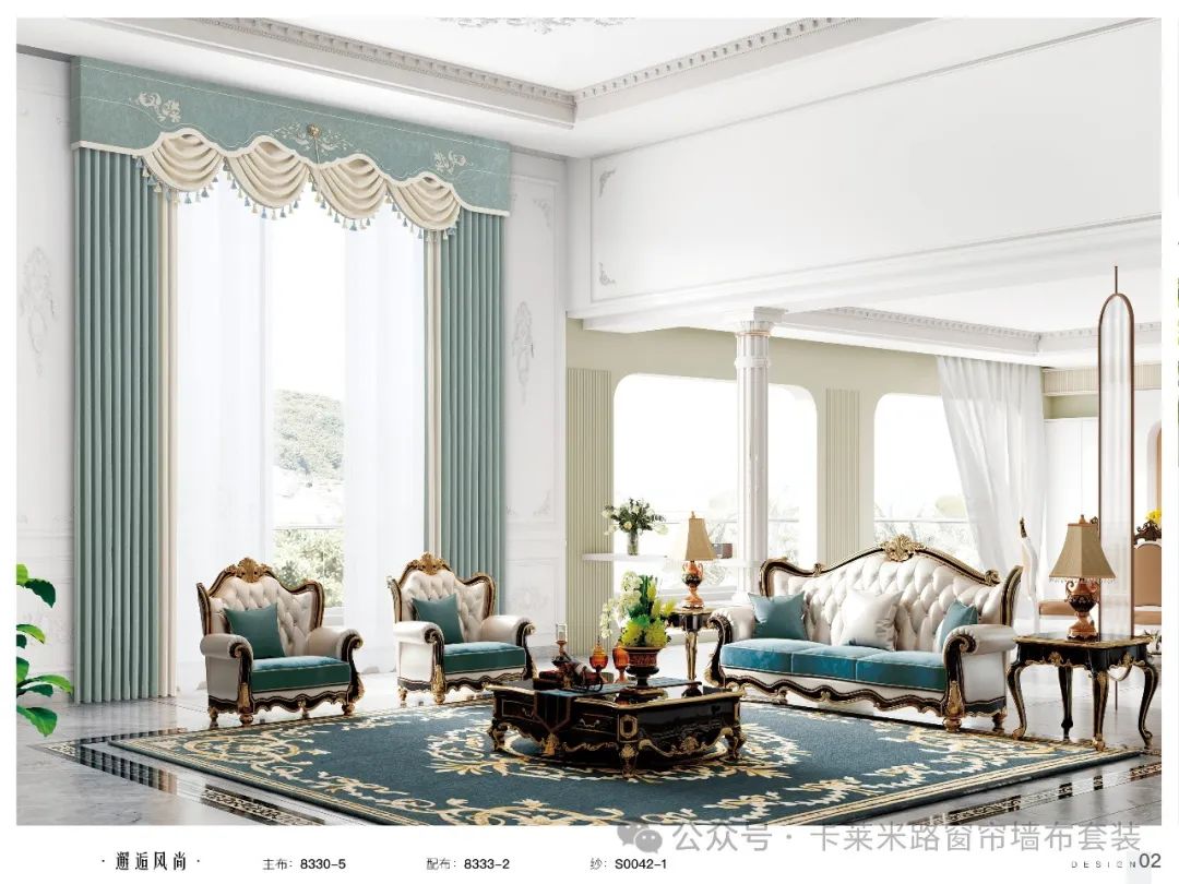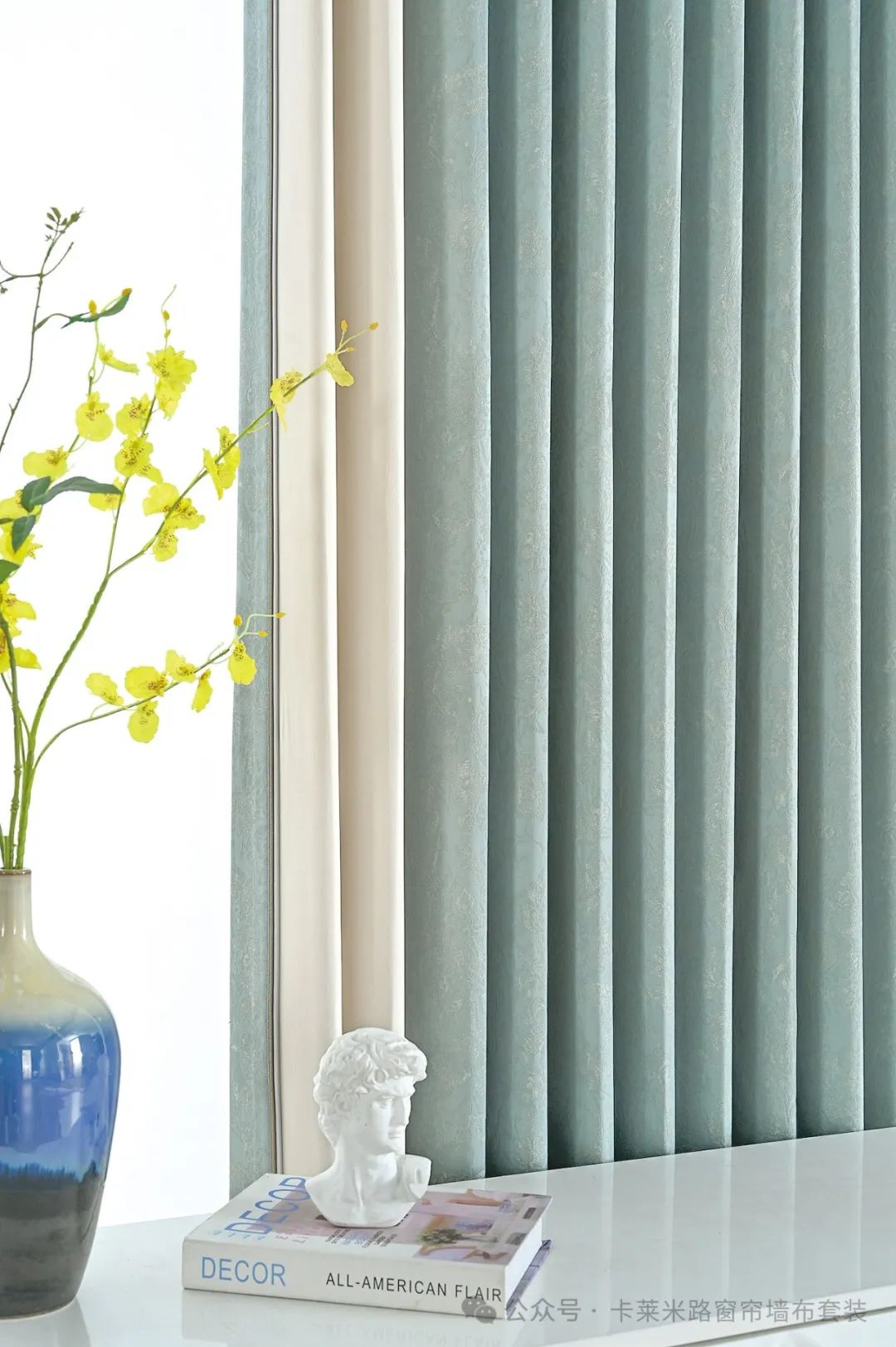 兰绿色纹理主布配米白色配布,加兰绿色纹理主布立边,用银丝滚绳花边点缀,给人一种温馨的淡雅之美,色彩明亮、空间感强、简约大气,寓意着人生中的一种处世哲学,充满着中庸之道,人生的岁月里团结、友爱,充满着阳光。