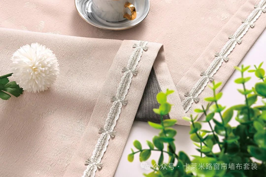 这是一款高精密材质,90%遮光的窗帘,纹理清晣,立体感强。粉色银丝暗花图案的高精密主布,一公分蝴蝶结小花边予以点缀,体现出温馨、浪漫的生活气息。寓意着爱情的纯洁、浪漫、温馨、美好、永恒。