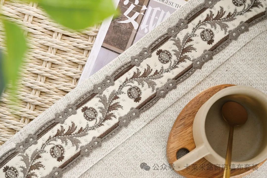 米色的主布加上5公分的咖色绣花小花边,给人一种清新时尚的美。体现出当代年轻人的“才华、气质、魅力、高情商”和奋发向上的精神面貌。寓意着人生前程远大,生活更加丰富多彩。