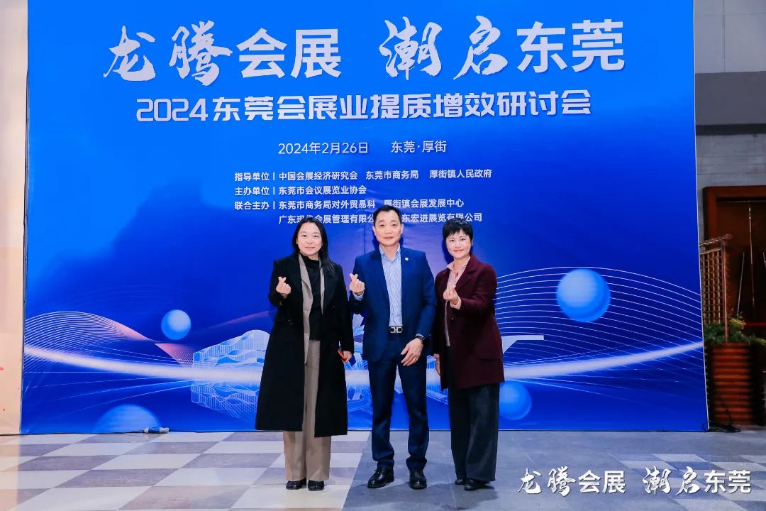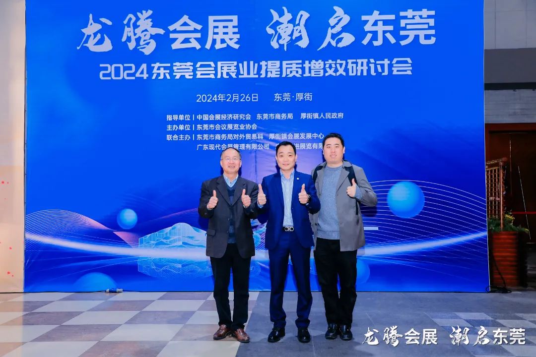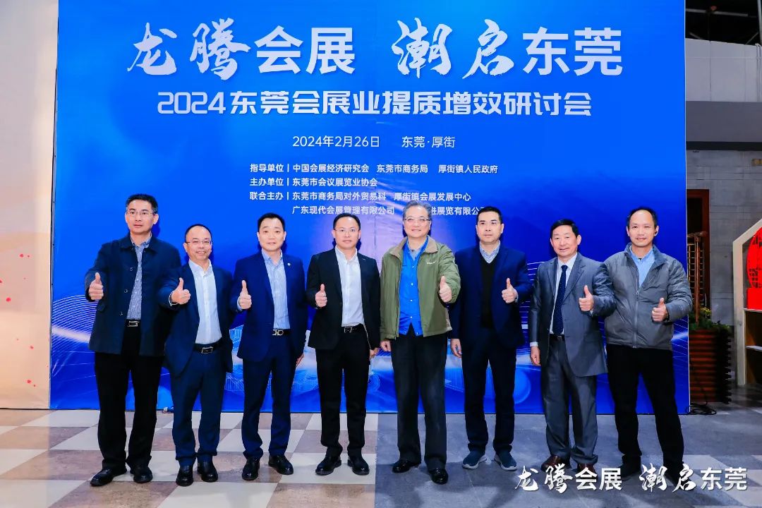 2月26日,主题为“龙腾会展,潮启东莞” 的2024 东莞会展业提质增效研讨会、第五届东莞市会议展览业协会理事会就职典礼暨 2024 年东莞会展春茗臻宴在东莞厚街 • 广东现代国际会展中心成功举办。活动由中国会展经济研究会、东莞市商务局、厚街镇人民政府指导,东莞市会议展览业协会主办,东莞市商务局对外贸易科、厚街镇会展发展中心、广东现代会展管理有限公司、广东宏进展览有限公司等联合主办。