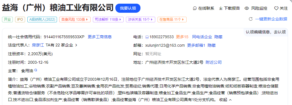 公司隶属于世界五百强企业新加坡丰益国际有限公司,是改革开放后最早 投资中国的爱国华侨企业集团之一,几十年来,在国内投资了众多的粮油食品 加工、研发等项目。公司也积极投身公益慈善事业,先后四次获得国家颁发的 “中华慈善奖”。公司长久以来一直重视合规运营,相信司法机关能够公正审 理案件,维护广州益海的合法权益。