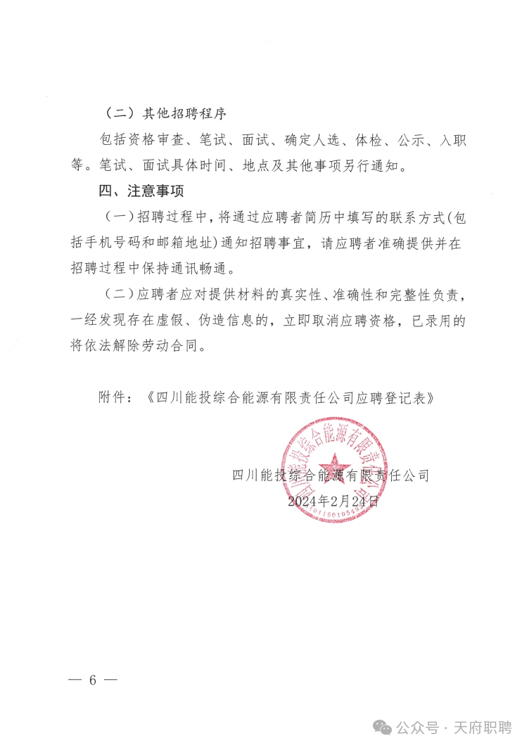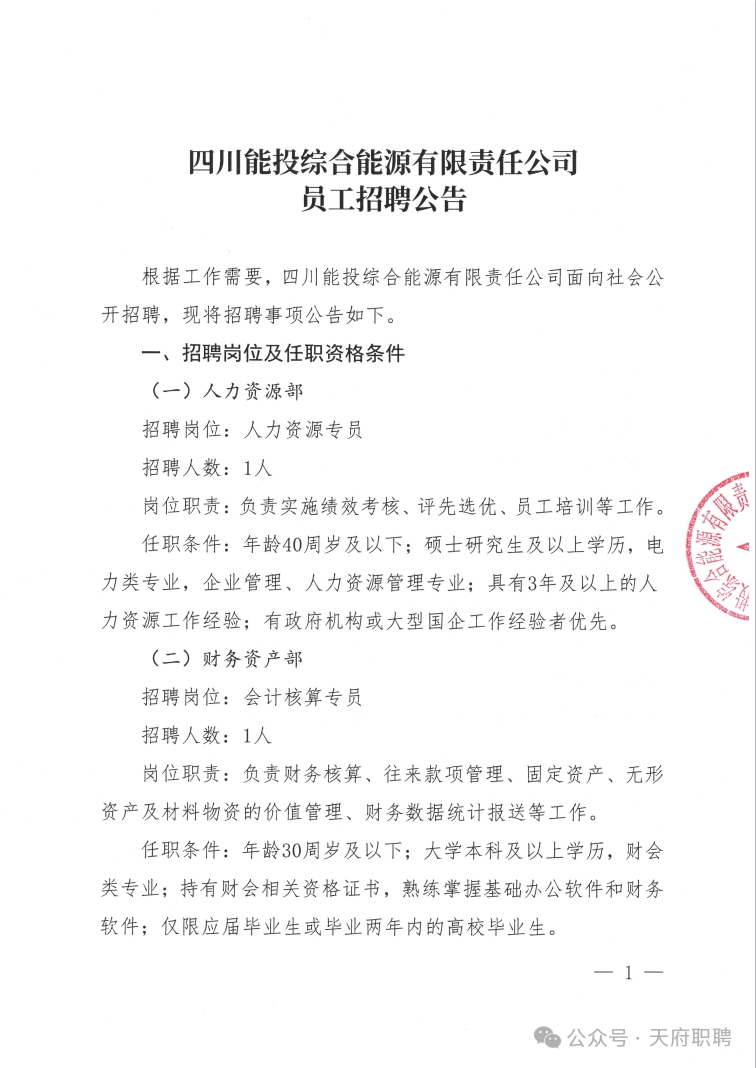 四川能投综合能源有限责任公司员工招聘公告