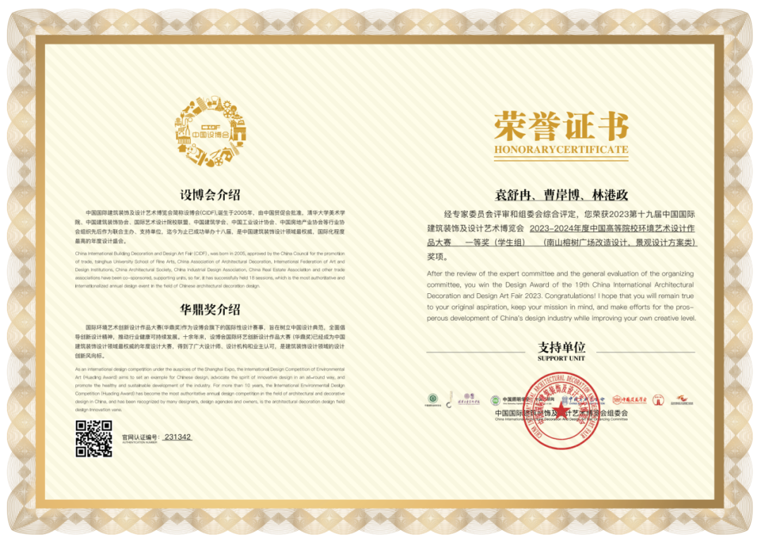 在第十九届中国国际建筑装饰及设计艺术博览会上,我院环境设计专业的冉旭教授指导的学生团队,以出色的表现赢得了殊荣。荣获本次博览会金奖。他们的设计作品在本次大赛中获得了卓越的成绩,展现出了环境设计专业的独特魅力和创意潜力。