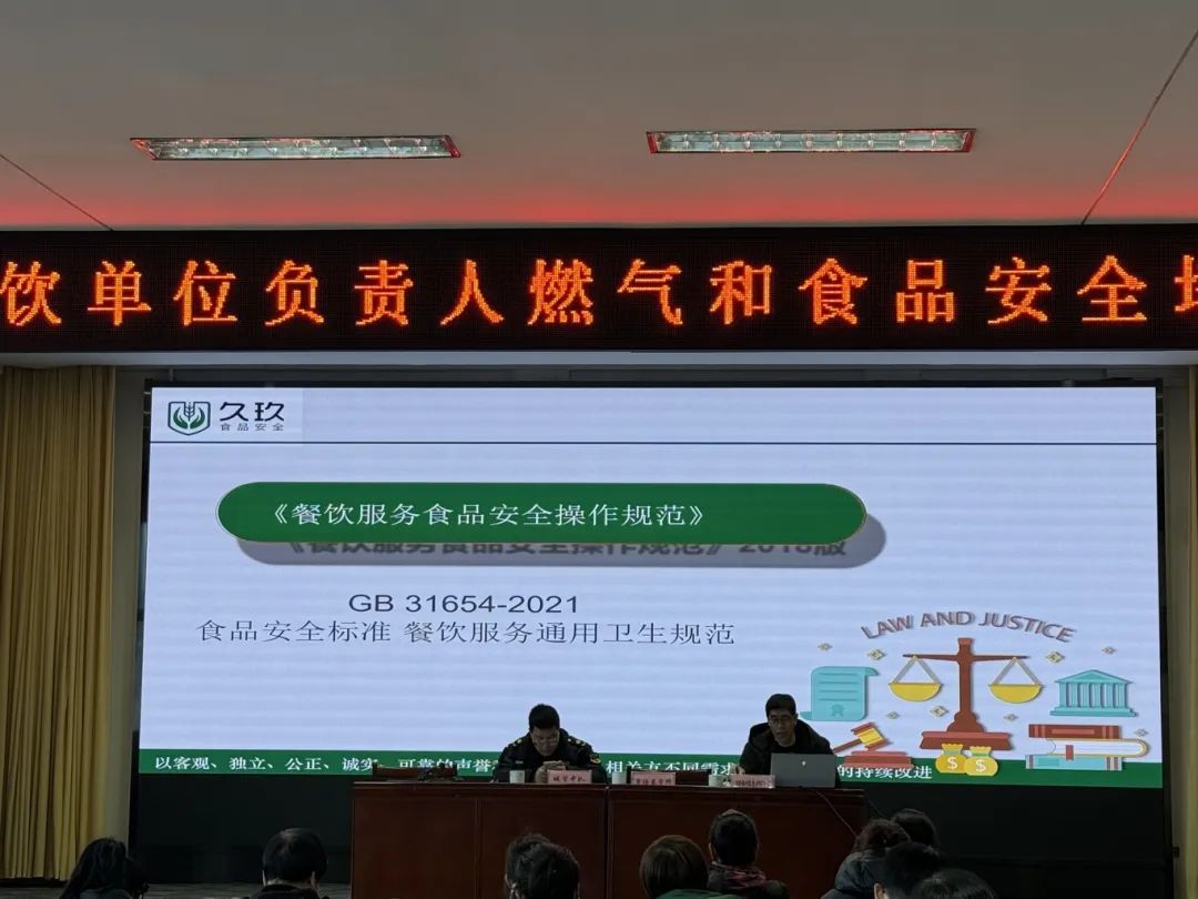 由镇城管中队讲解相关燃气事故案例,并邀请浙江久玖企业管理有限公司开展食品安全知识培训,全镇100余名餐饮企业负责人、厨师和员工参加培训。