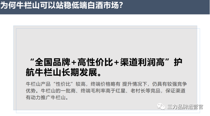 3)牛栏山为啥能有100亿市场?---------------“全国品牌+高性价比+渠道利润高”护航牛栏山长期发展。
