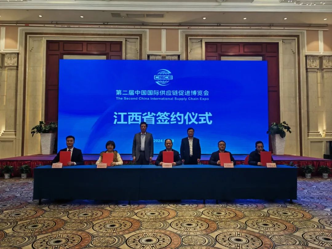 2月28日,第二届中国国际供应链促进博览会江西省签约仪式在南昌举办。中国贸促会副会长于健龙、江西省贸促会副会长彭峰出席,江西省贸促会副会长朱晓燕主持签约仪式,4家江西企业与中展集团现场签约参展。
