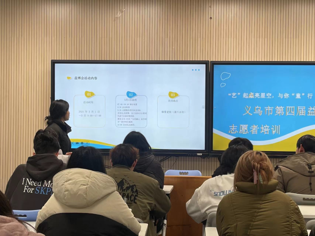 近日,一场特殊的志愿者培训在义乌工商职业技术学院创意设计学院隆重召开。本次培训旨在为即将参与义乌第四届公益博览会的学生志愿者们提供指导,让他们能够更好地向大家展示为特殊儿童、留守儿童以及困境儿童提供的帮助,助力他们的成长与发展。同时他们也希望通过“艺束光”项目呼吁社会关注特殊儿童群体。
