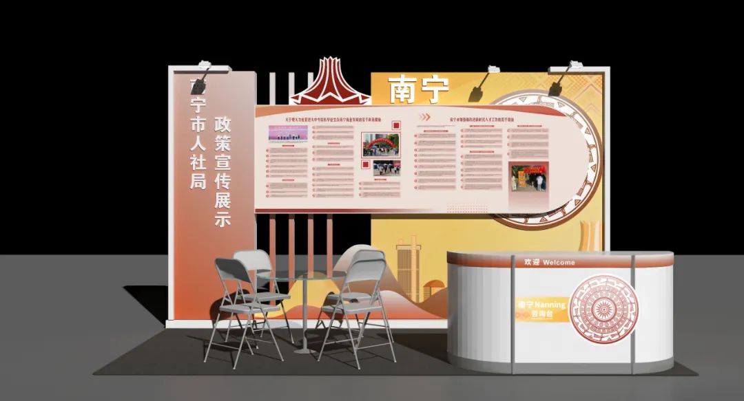 公司再次火力全开,同时服务广西14个地级市人社局展位设计施工,在任务繁重、要求极高、时间紧迫的情境下,始终秉承“创新、负责、团结、实干”的精神,科学统筹、多岗联动配合高效完成任务,让客户见证“短时、高效、高质”的一站式设计服务工作奇迹!
