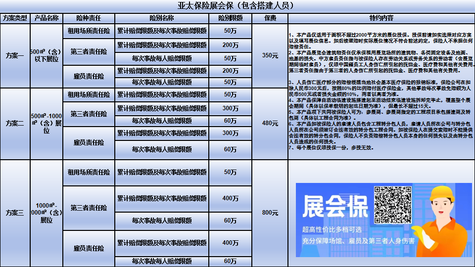 (五)此保险可替代以往搭建单位购买的施工人员安全险,更加贴合实际需要,由一人一险"转变“一展台一险”,与国际化大型展会安全标准接轨。