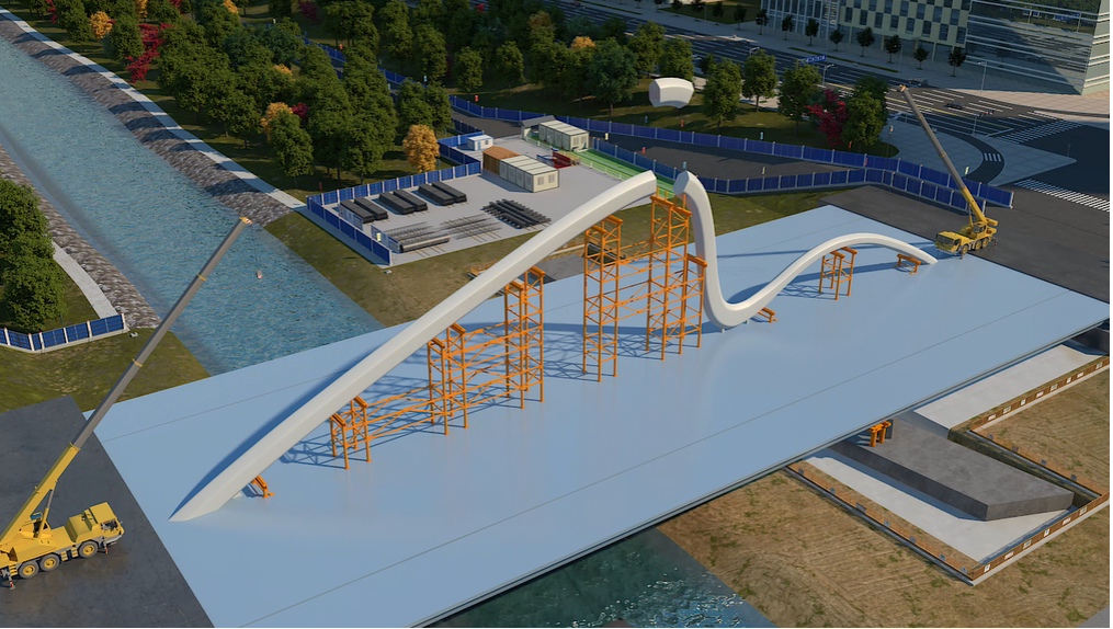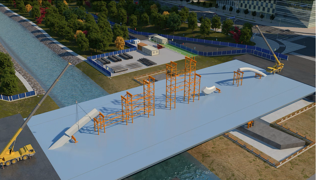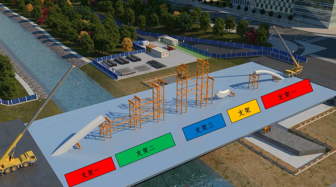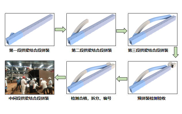 桥拱在工厂进行制作,加工完成后在厂内进行预拼装,经验收合格后按照安装顺序运输至施工现场。