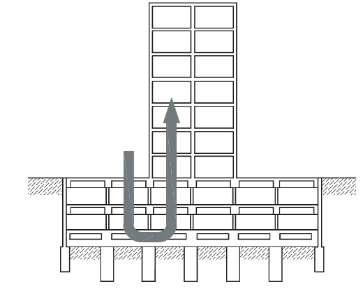 地下工程基坑施工不用支撑系统,在支撑系统上降低了造价。