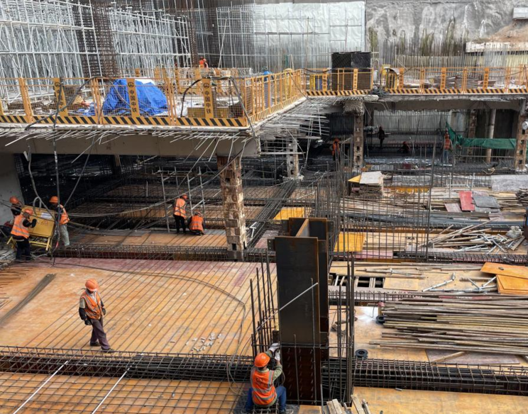 2021年6月13日,前海交易广场项目南区主体结构顺利封顶,采用逆作法施工,最大限度的减少了围护结构施工的时间,施工过程中,基坑变形一直处于可控范围内,逆作法施工的各项效果显著。