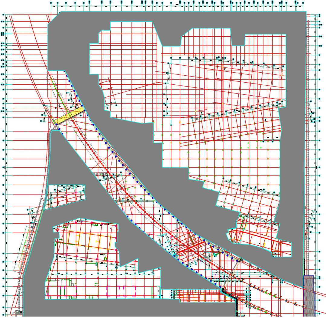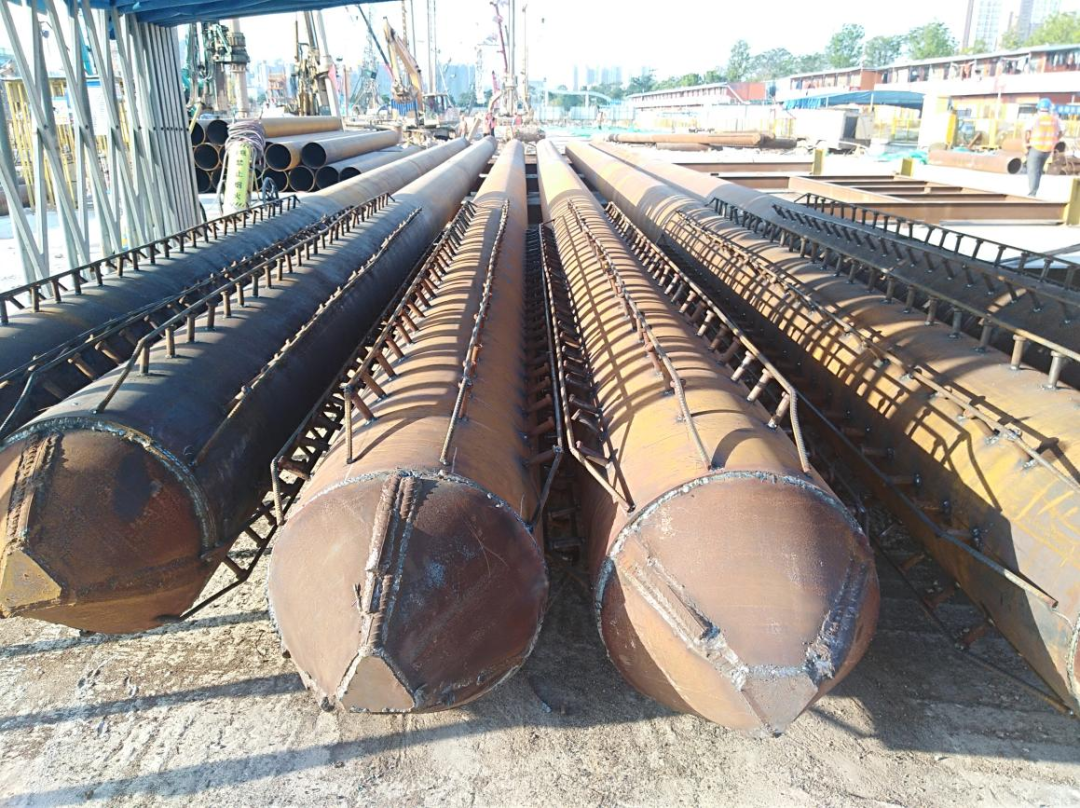 本项目逆作区域桩基共731根,格构柱共210根,钢管柱共521根,桩径为800~1600mm。