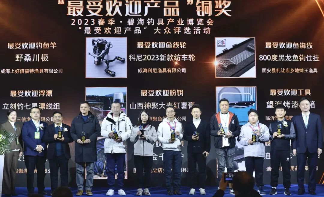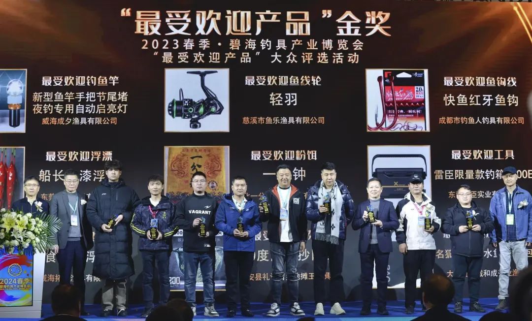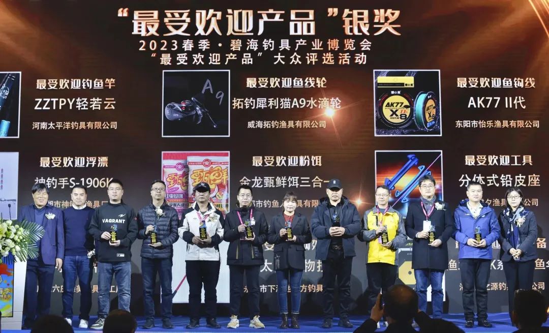 本次展会开幕式上举办了2023年度“最受欢迎产品”大众评选颁奖仪式。自2014年以来,我们已连续举办了六届,累计有千余家企业参加,二百多个产品获奖。旨在表彰优秀产品,弘扬工匠精神,推动中国钓具产业健康发展。2023年重启的“最受欢迎产品 ”大众评选活动共有106家企业参与评选,入选产品160件,最终9大类别共有27款产品脱颖而出,荣获奖项。