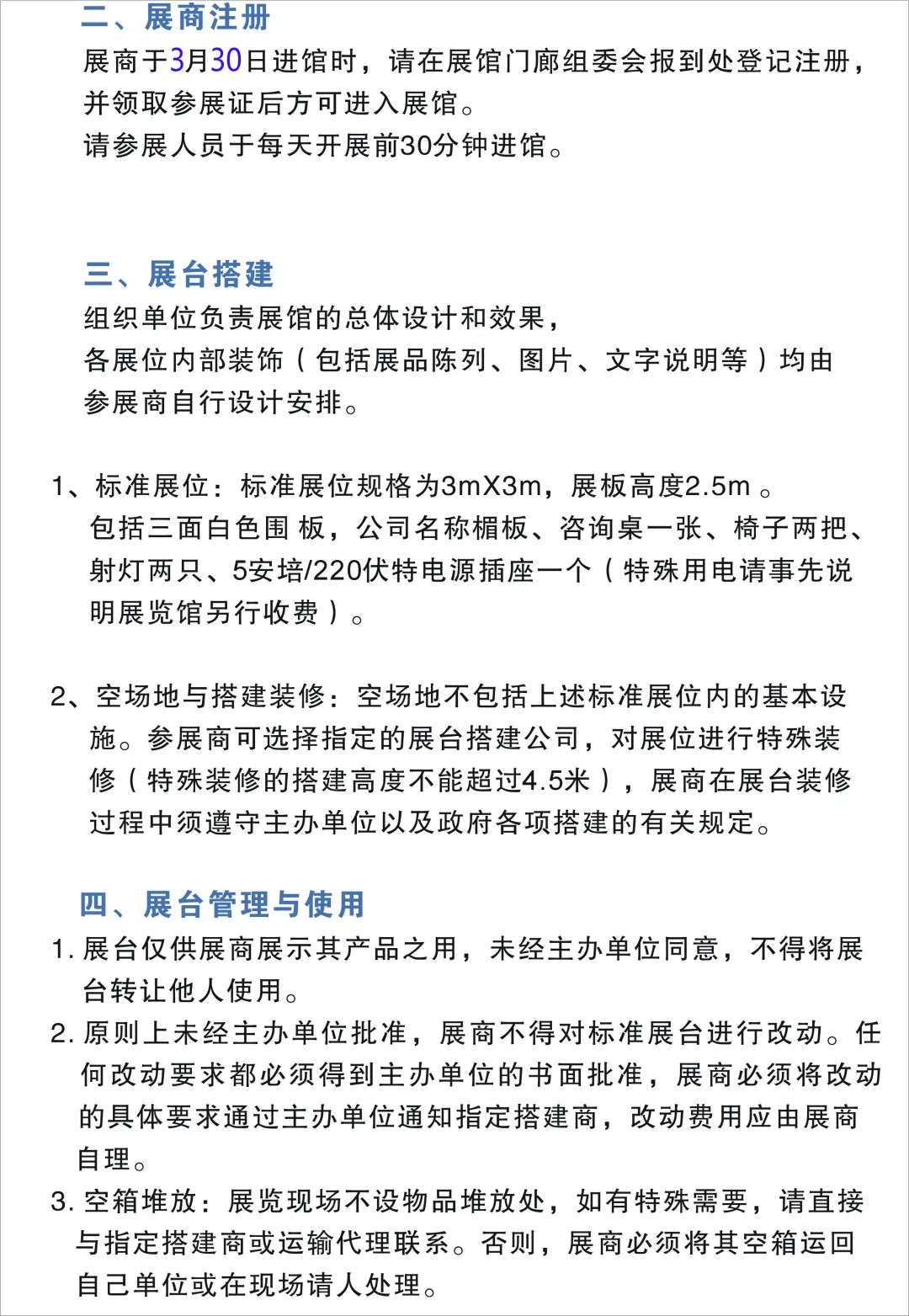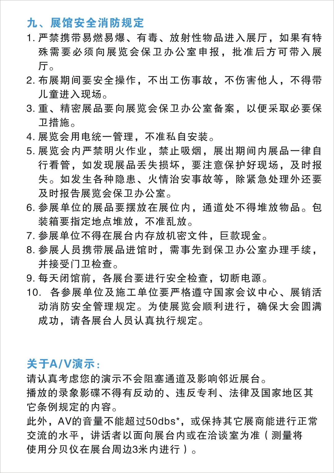 特殊用电请提前申请,现场增加展具或电箱,电源插座及灯具的展商请提前预定。