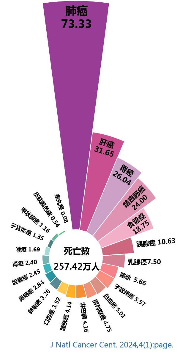 肺癌霸主地位不可撼动,死亡人数亦遥遥领先