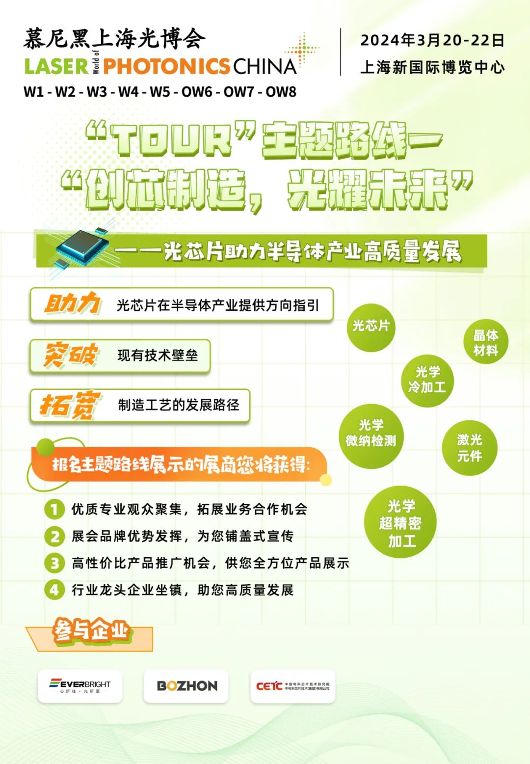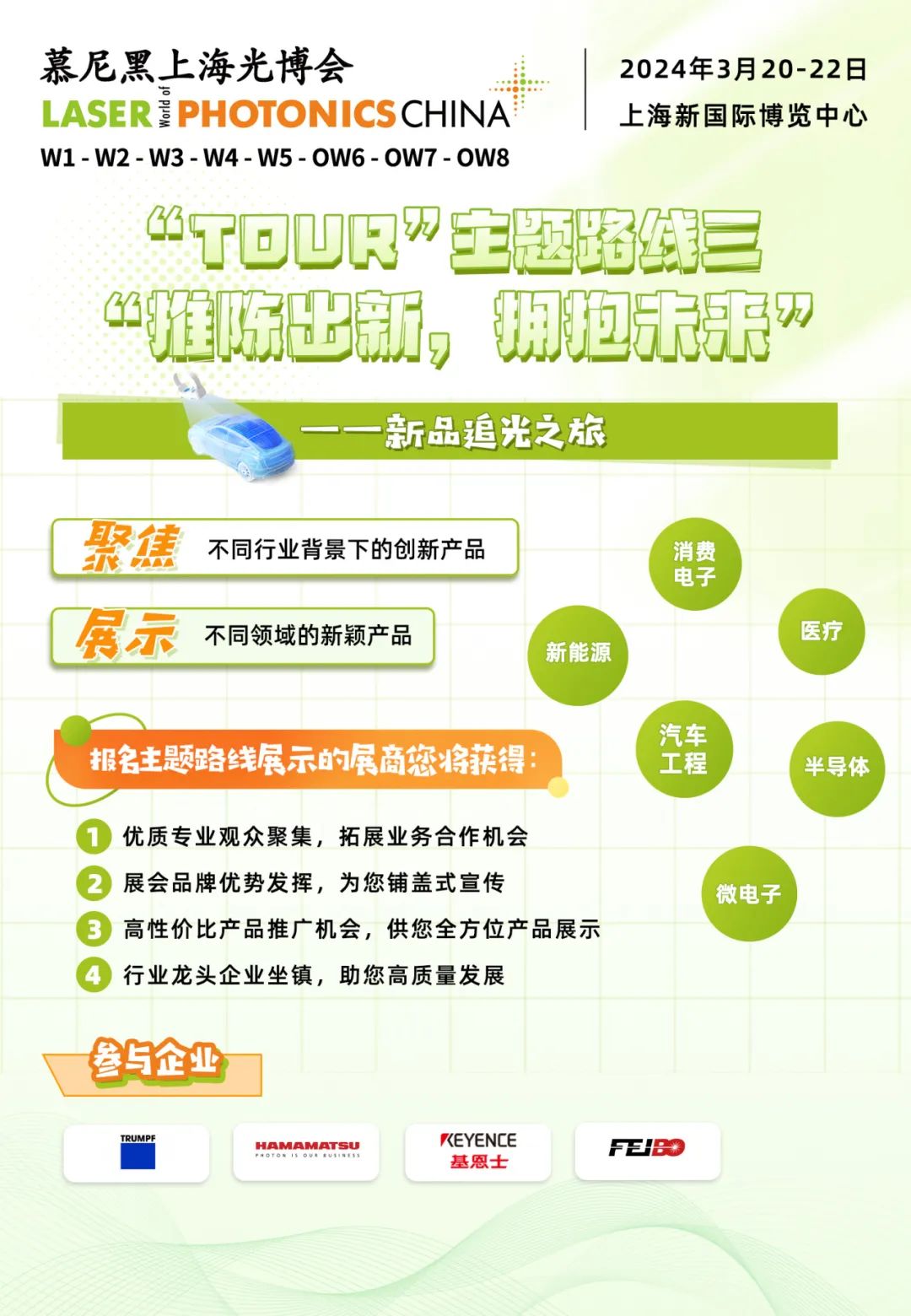 三条特色主题路线,带您深入探索光学、激光和新品的世界。