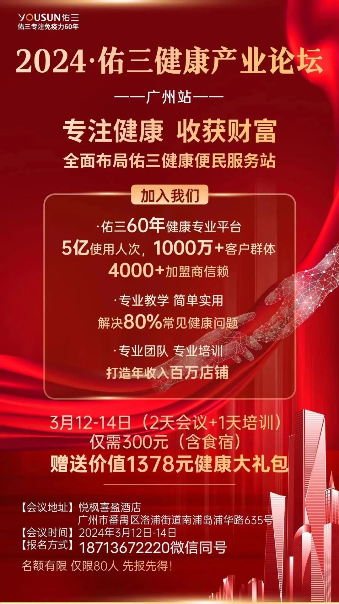 3月12日-14日来广州参会,您将看到佑三的全新市场布局,为您打开一扇健康财富共赢的大门!