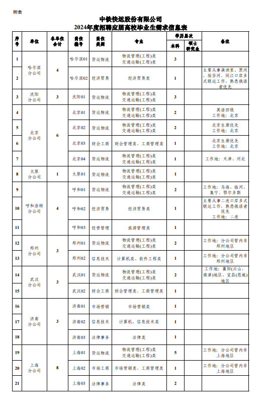 中铁快运股份有限公司2024年度招聘应届高校毕业生需求信息表.pdf.pdf