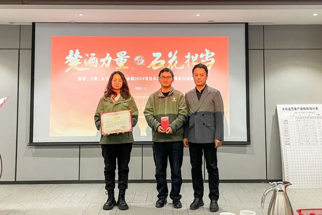 2月29日,石花酒业营销管理总部清香产品事业部、三香产品事业部、大工匠产品事业部首期“百日大战”总结表彰暨春风行动动员会在石花酒业营销管理总部成功召开。石花酒业营销管理总部清香产品事业部总经理罗保仁、三香产品事业部副总经理杨健康、服务协同中心副总经理杜斌、清香产品事业部总监姚毅、三香产品事业部副总监陈亮、清香产品事业部见习总监龚志艳以及各事业部全体员工参加会议。