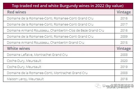 2018 和 2020 年份的需求增加。然而,较老的年份如Domaine Georges Roumier Bonnes Mares Grand Cru 2011 和Domaine Gros Richebourg Grand Cru 2007 年等也吸引买家。