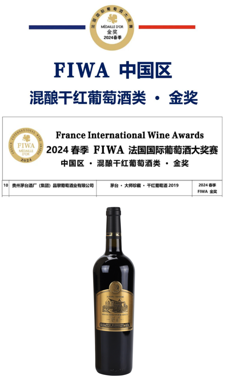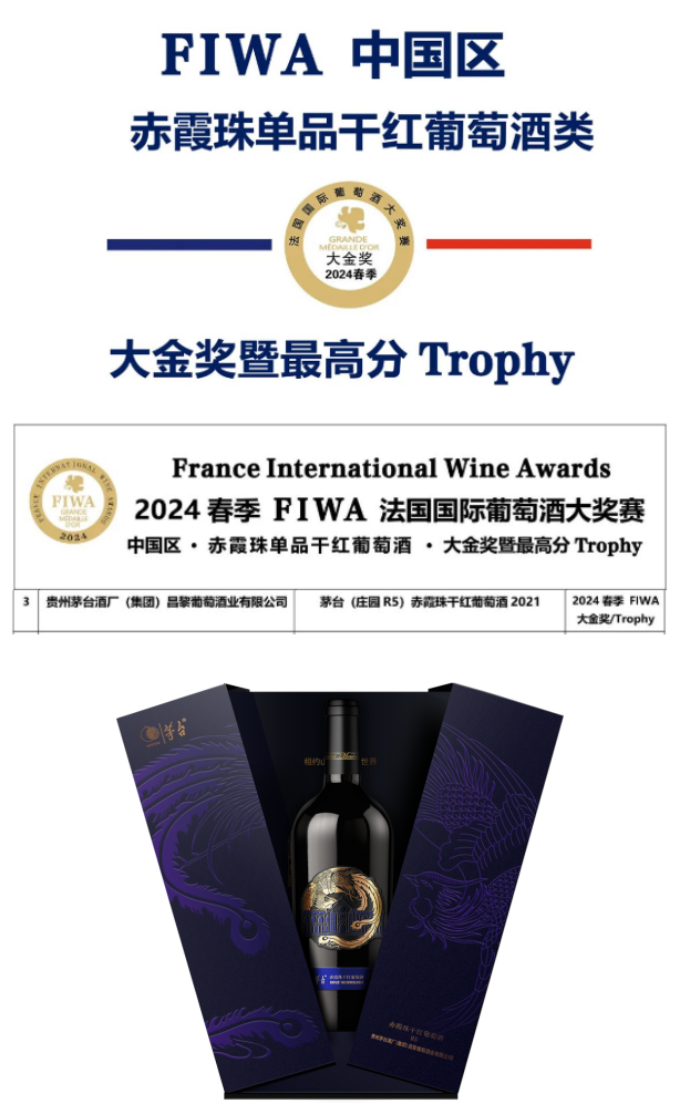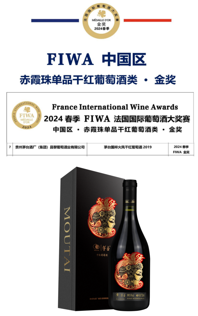 据茅台葡萄酒消息,2月24日,2024春季FIWA法国国际葡萄酒大奖赛评选结果出炉,茅台葡萄酒再创佳绩,5项产品斩获奖项。