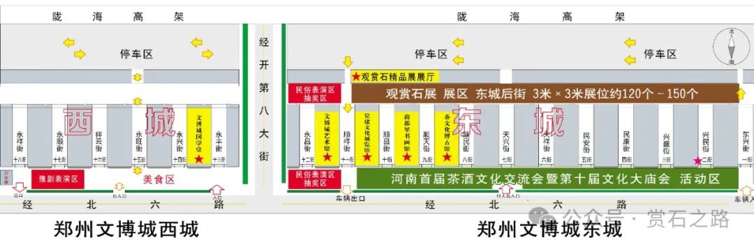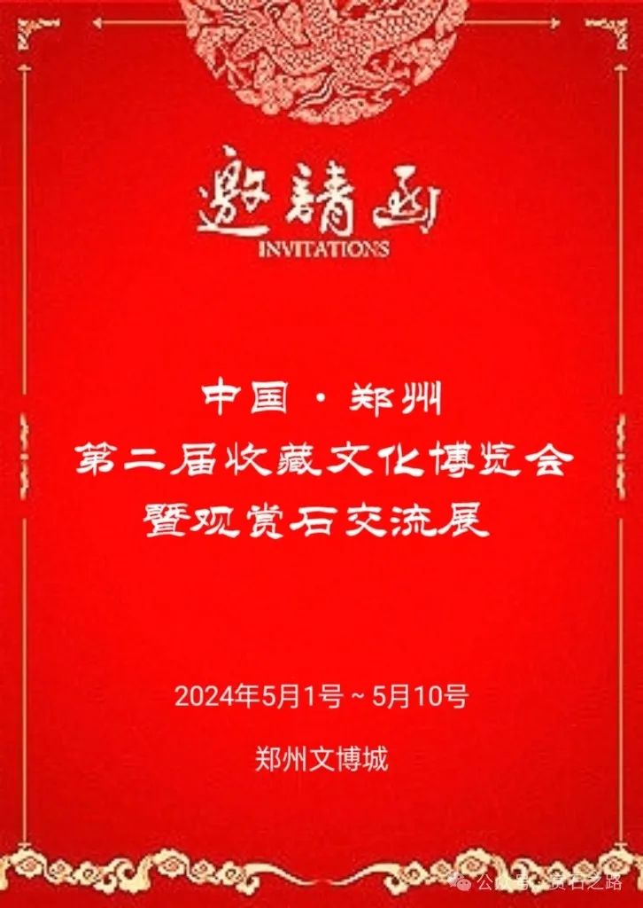 展销位:1600元/平位(3米 x3米),角位1800元 2、参展藏品需提供多角度高清照片,至少三张;注明藏品题名、石种、规格、藏家电话。3、参展藏品须符合中国国土资源部2017年发布实施的《中国观赏石鉴评标准》中对观赏石的定义。杜绝造假、染色及国家严令禁止的石种参展。 4、时间安排:即日起至4月29号为精品参展报名征集时间。5、本届综合精品展可容纳1000 余方精品石参展,参展藏品需自带底座。由于展柜空间有限,谢绝高度超过50公分、宽度超过80公分的观赏石参展。国家严令禁止的品种谢绝参展。 自备展篷,每个摊位预交保证金500元,展会结束按要求退场,全额退还。 1、4月28号-30为室外展销布展时间。交易范围:各类观赏石、根雕、盆景、玉器、瓷器、木器、杂项等。 撤展时间:5月9-10号(请务必遵守,逾期保证金不予退还)。2、展商必须诚信守法,遵守国家法律法规,如因个人行为造成的一切后果自负。3、本届展会是为各位展商提供一个交流展销的平台,任何商业经营都存在一定的风险,本着自负盈亏的原则,自愿参加。所有展商要维护好公共设施,展会期间请保管好个人财物,若出现损害公共设施或私人财产丢失均由展商个人负责。4、国家禁采禁售的矿物化石和大型园林石,大型车载石谢绝参展。5、不得使用煤气罐或明火做饭,以免引起火灾等安全事故。6、严禁损害公共财产,严禁在地面钉钉子、打膨胀螺丝。撤展打包完成后,请清理地面垃圾,打扫卫生,方可办理撤展手续。7、因政府行为、自然灾害等不可抗拒的因素引起的损失,由本人负责组委会不予承担责任。9、以上活动内容若有变动,以现场实际情况为准,最终解释权归组委会。 自驾车,陇海快速路东风南路出口下,向南100米即到。公交:123路、129路、600路,在经开第八大街与经北六路站下车即到。地铁 :乘坐地铁1号线、至东风南路站下车,乘123路公交。乘坐地铁5号线、至经开中心广场站下车,乘123路公交。中国·郑州第二届收藏文化博览会组委会