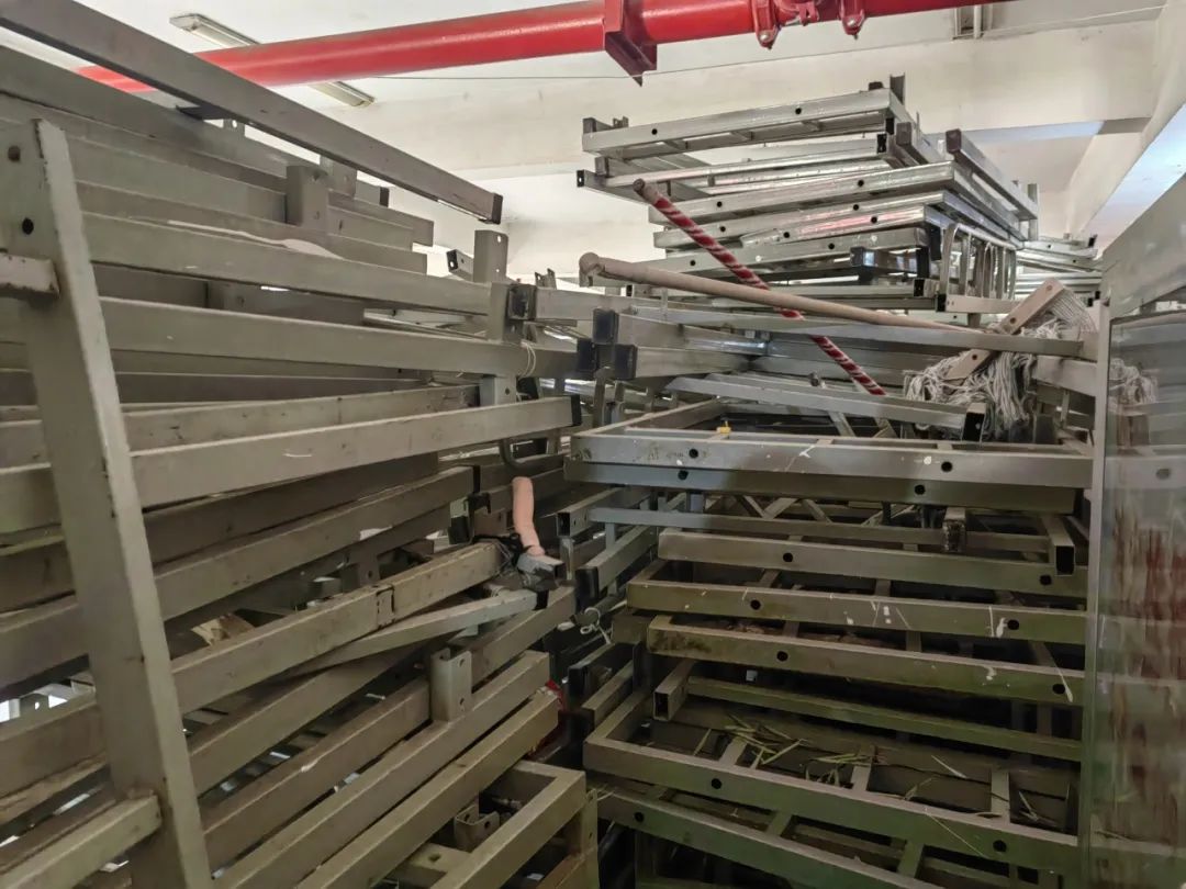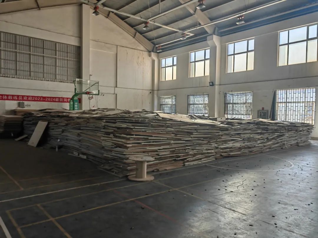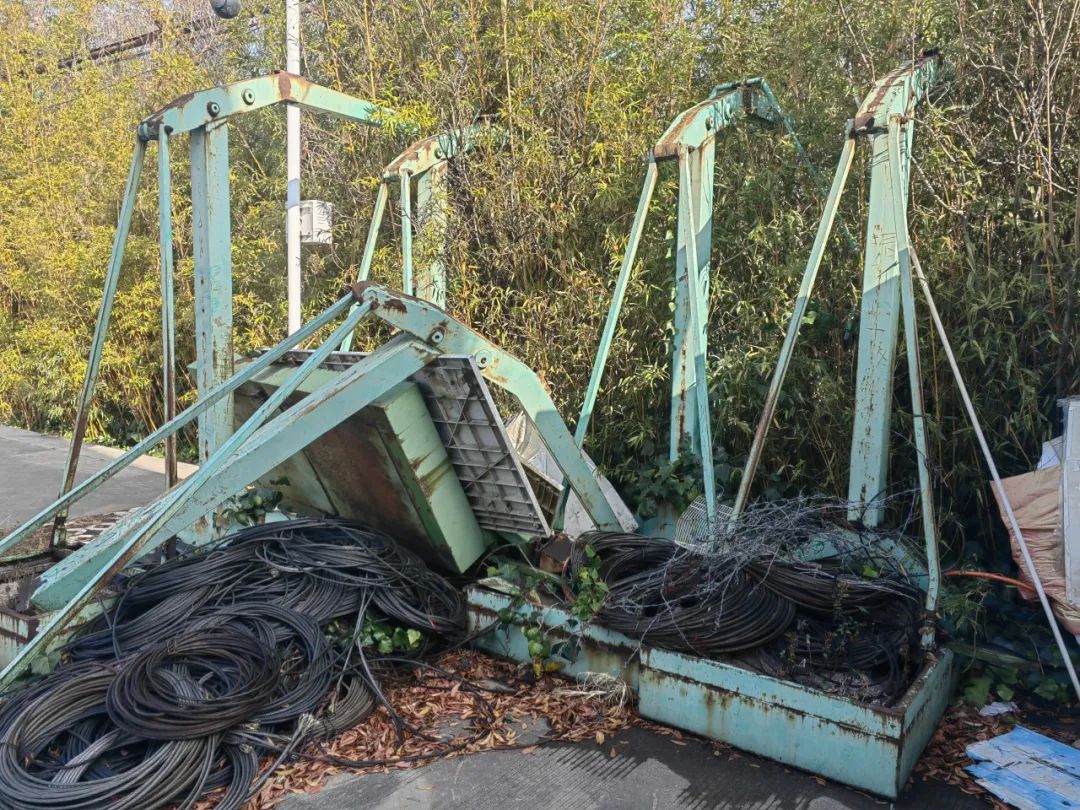 (三)室外篮球场旁堆放的废旧篮球架及电梯钢绳。
