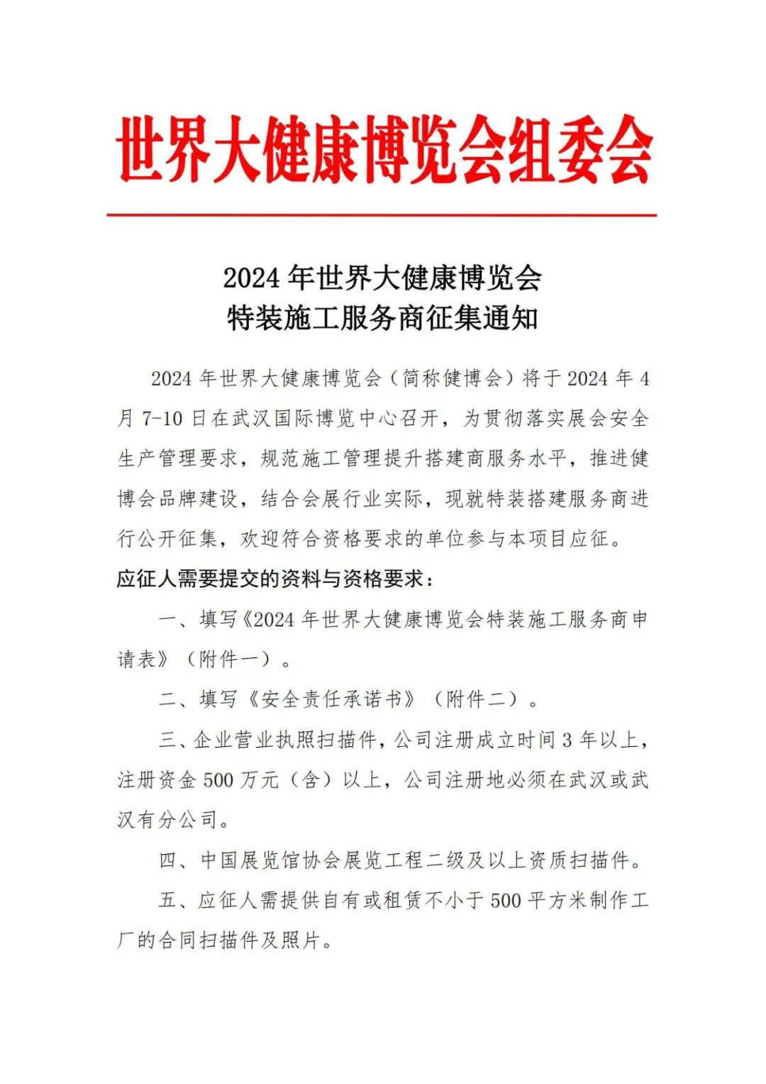 2024年世界大健康博览会拟于2024年4月7-10日举行,欢迎报名参展参会。