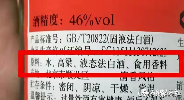 喝酒嘛,当然要选这种酒质好的,毕竟是喝进肚子里的东西,不能随便凑合。当然,“往酒中滴油”的方法,只适合已经买回家的酒,如果是买酒之前,想通过观察酒瓶来分辨酒好酒坏,同样也能实现。一看原料表,是否只有“纯粮+水”,不带有其他添加剂物质;二看执行标号,是否有“20821、20822”,这些都是酒精酒;
