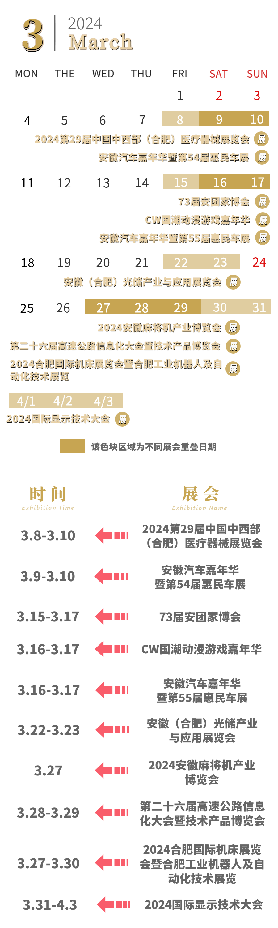 2. 展会排期中的展览时间、名称,具体以主办单位确定的为准;