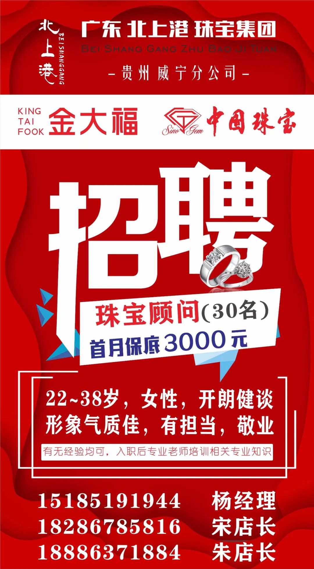 威宁中国珠宝、金大福珠宝招聘