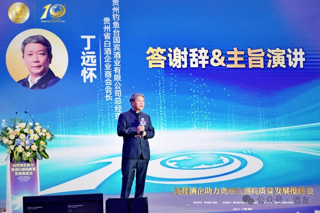 会上贵州省白酒企业商会会长丁远怀针对贵州白酒十年成长与发展做了主旨演讲,并就近年来贵州白酒奋力拼搏、共同努力,产业集群规模持续扩大,结构不断优化,创新能力不断增强。对于当下贵州白酒取得成绩给予肯定与赞扬。