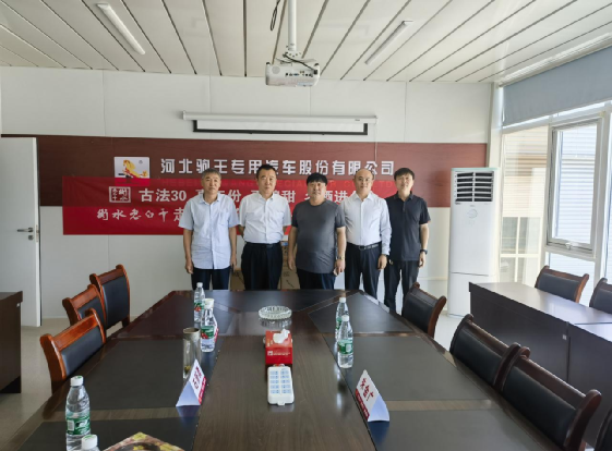 7月28日,衡水老白干营销有限公司副总经理石新勇、衡水高端酒大区南部分公司经理李健、枣强副食总经理何孝民等一行走进战略合作企业河北驹王专用汽车股份有限公司参观交流,河北驹王专用汽车股份有限公司董事长朱金广参加活动。