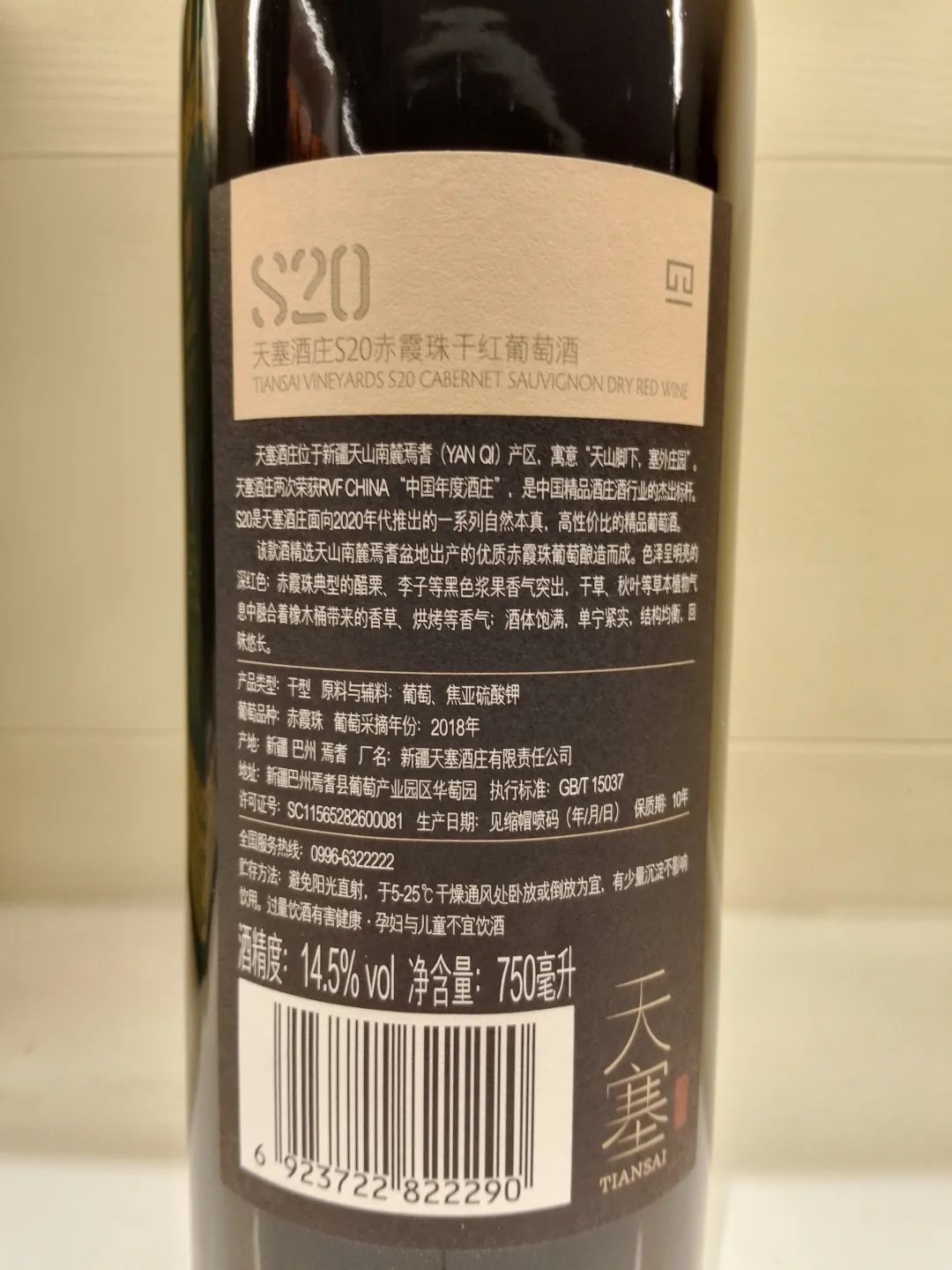 今日推介:天塞酒庄S20赤霞珠干红葡萄酒