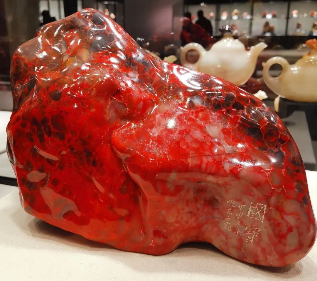 1972年中日建交时,周总理选用一对昌化鸡血石以国礼馈赠给日本首相田中角荣。毛主席也曾使用过两方大号鸡血石印章。