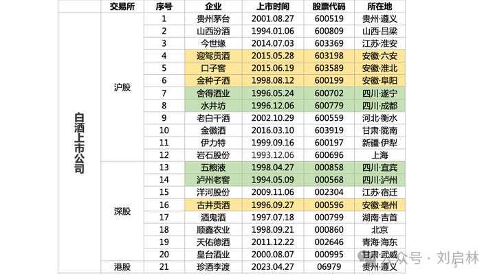 截至2023年,沪深港共有21家白酒上市公司。