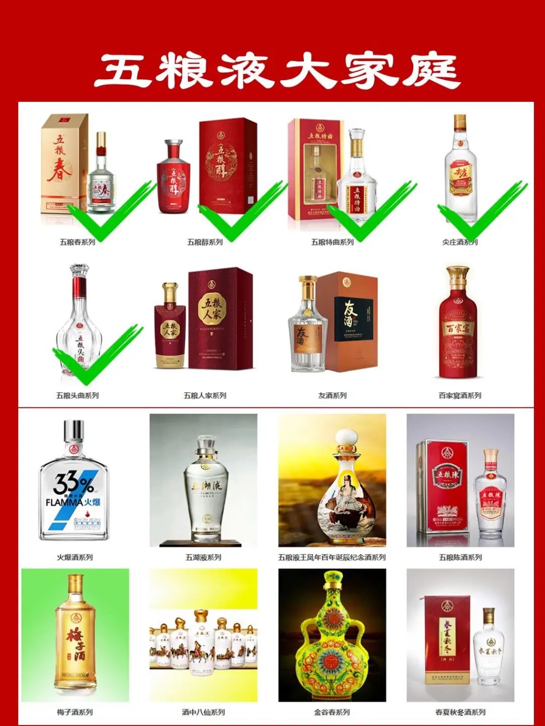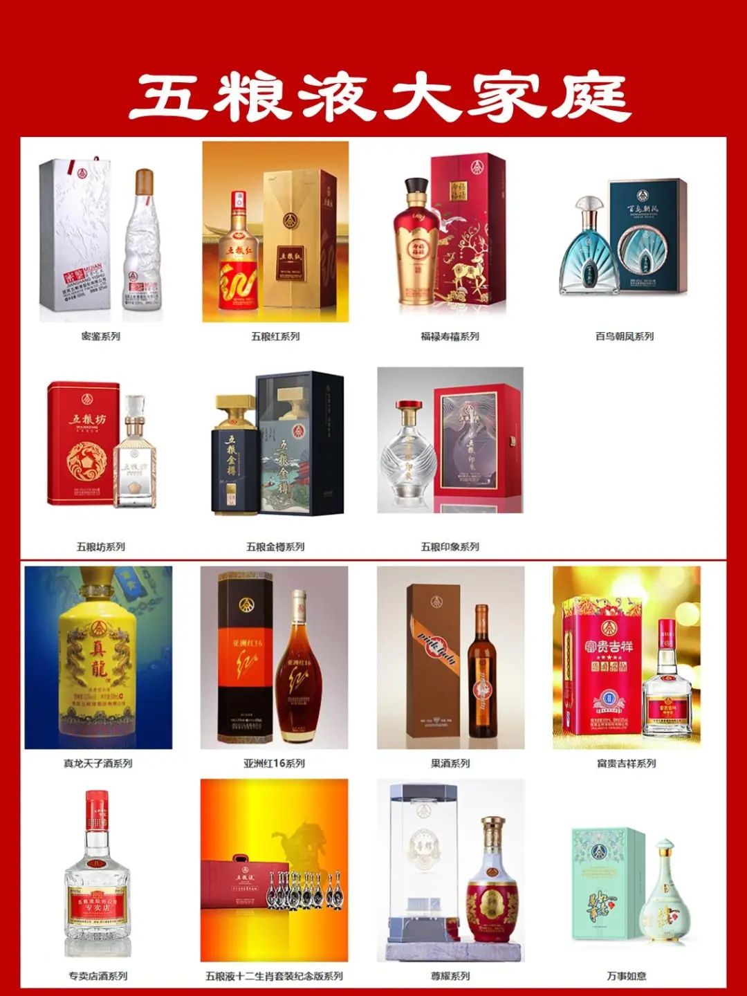 上面列的前三款是五粮液最核心的产品了,普五就不用多说,飞天之下就是普五了,