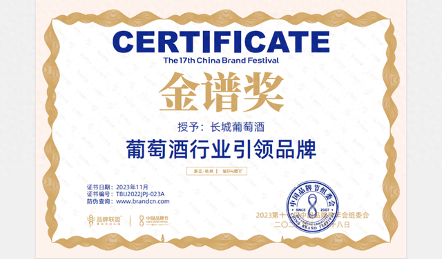 进入2023年,长城葡萄酒在中国品牌节上荣获金谱奖,被誉为“葡萄酒行业引领品牌”,进一步巩固了其在行业的地位。这不仅是一枚荣誉的勋章,更是中国葡萄酒产业崛起的标志,提升了民族品牌的竞争力。