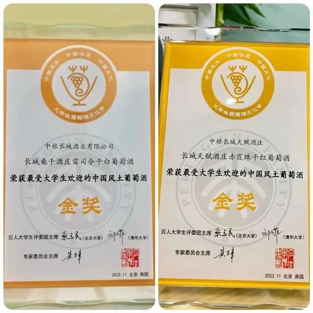 在北京大学主办的“最受大学生欢迎中国风土葡萄酒大赛”中,长城葡萄酒脱颖而出,被认可为“最受大学生欢迎的中国风土葡萄酒”。