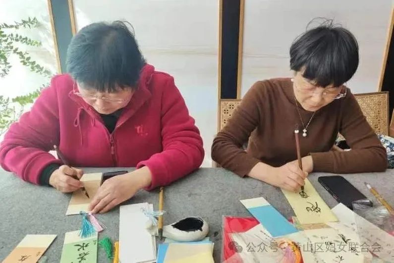 现场花香四溢,氛围温馨,她们写下一张张书签和条幅,有小楷、大篆、中隶……作品风格迥异,新式多样,或秀逸、或雄健、或简约、或温婉,随后大家对运笔、章法、落款、印章等方面进行互相点评、交流探讨,展现出女子书法作品的独特风采和艺术感悟。