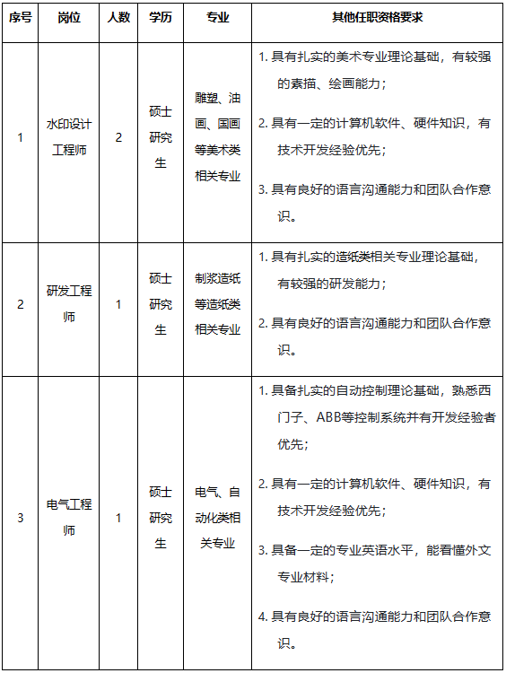 昆山钞票纸业有限公司招聘公告