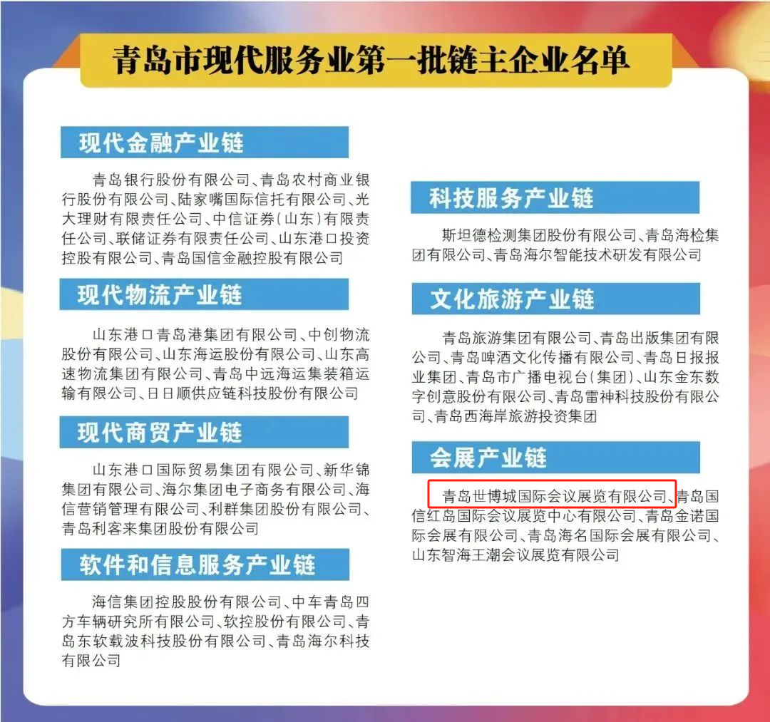 作为青岛市会展产业链链主企业,下一步,青岛世博城国际会议展览有限公司将进一步发挥桥梁纽带作用和产业带动作用,赋能服务业和会展产业创新发展,持续擦靓西海岸“会展之滨”城市名片,助力打造最美会展海岸带、建设国际会展名区,推动新区会展经济内涵式升级,为新区高质量发展注入强劲动力。