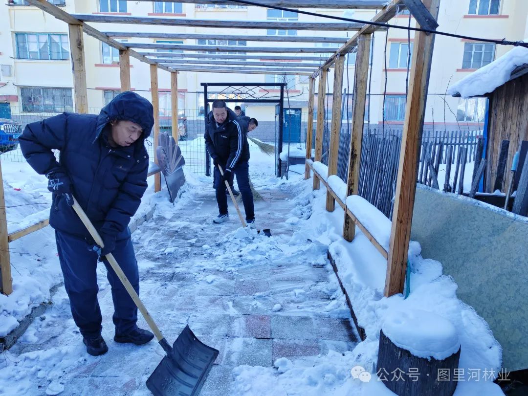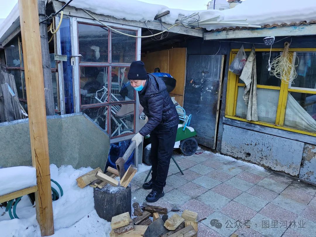 活动中,志愿者分工明确,有的负责用铁锹、雪铲、扫帚对院内的积雪进行清理,有的负责劈烧柴,干劲十足,经过1个多小时的劳动,院内的积雪得到了清理,劈好的烧柴被摞起垛,他们辛勤的付出得到赵玉才及家人的一致好评!