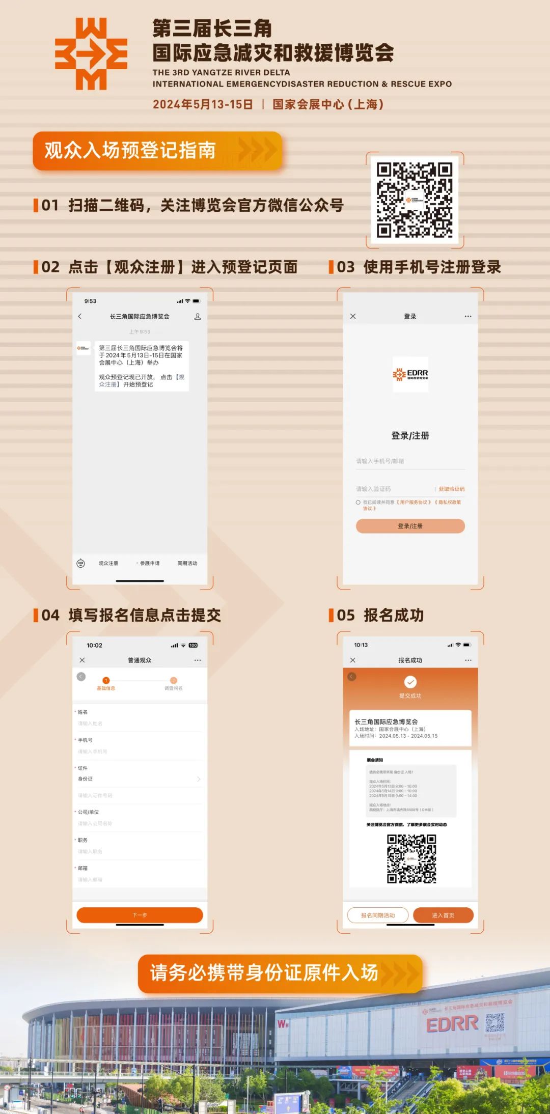 观众报名通道正式开启,请关注长三角国际应急博览会微信公众号,完成实名注册。