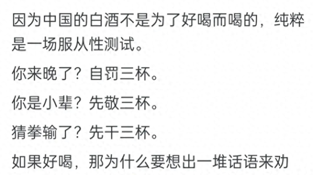 中国人对于酒的独特见解,黄酒、米酒等种种,却在白酒面前显得苍白无力。年龄增长伴随着口味的改变,年轻人对高度酒的抵触情绪愈发明显,而老一辈则将白酒视为一种习俗与传统的延续。